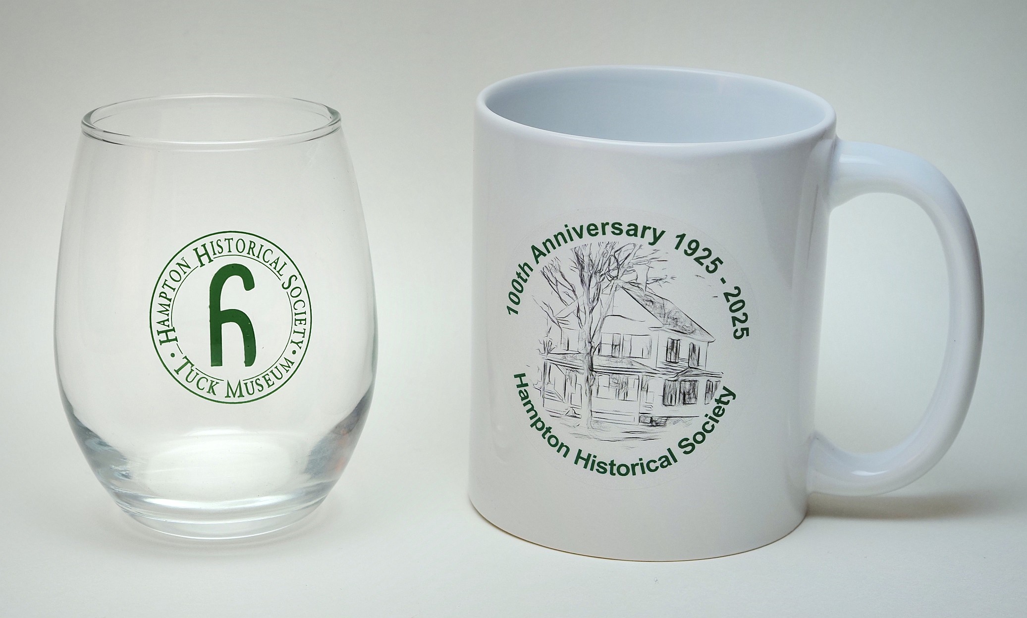Visit the museum gift shop to buy our commemorative glassware when the museum reopens on April 1. The wine glass on the left is $12; the mug is $10. Click here for larger view (browser back to return).