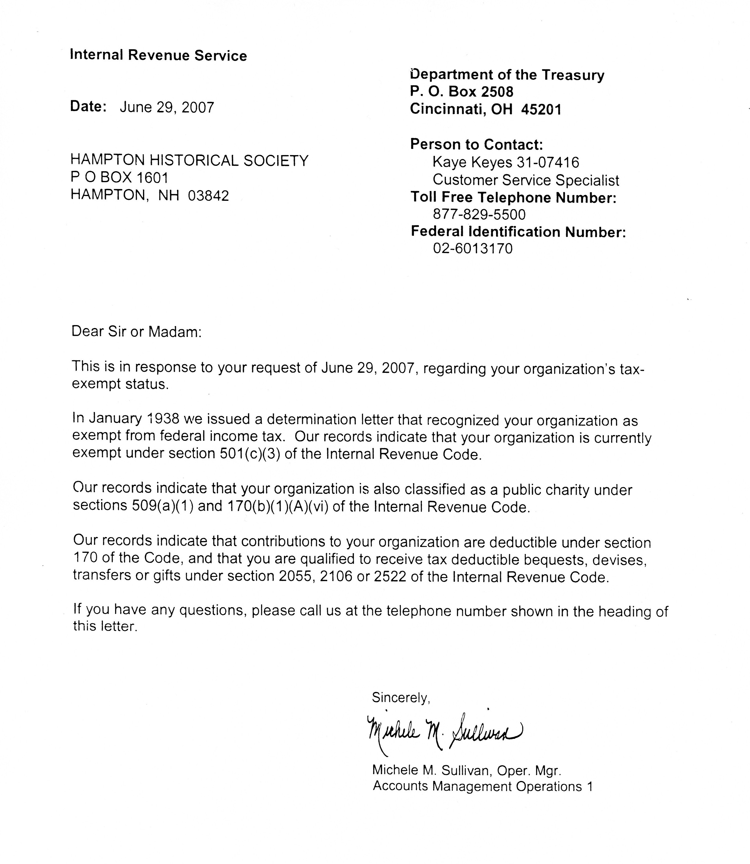HHS is a Section 501(c)(3) organization. Click here to see an IRS memo indicating this.