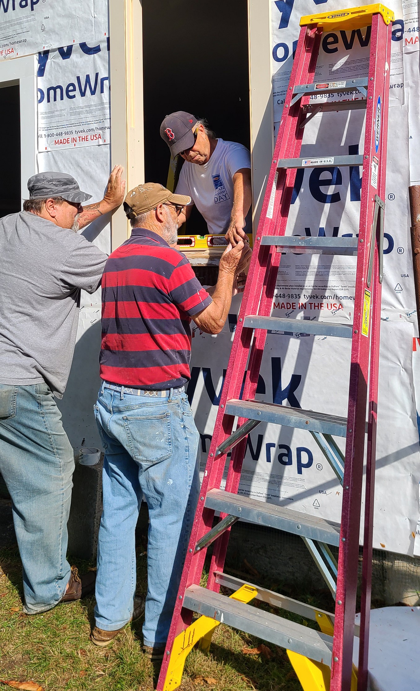 | Guest helper Dave Degagne lends a hand to Mike Compos and Gary |