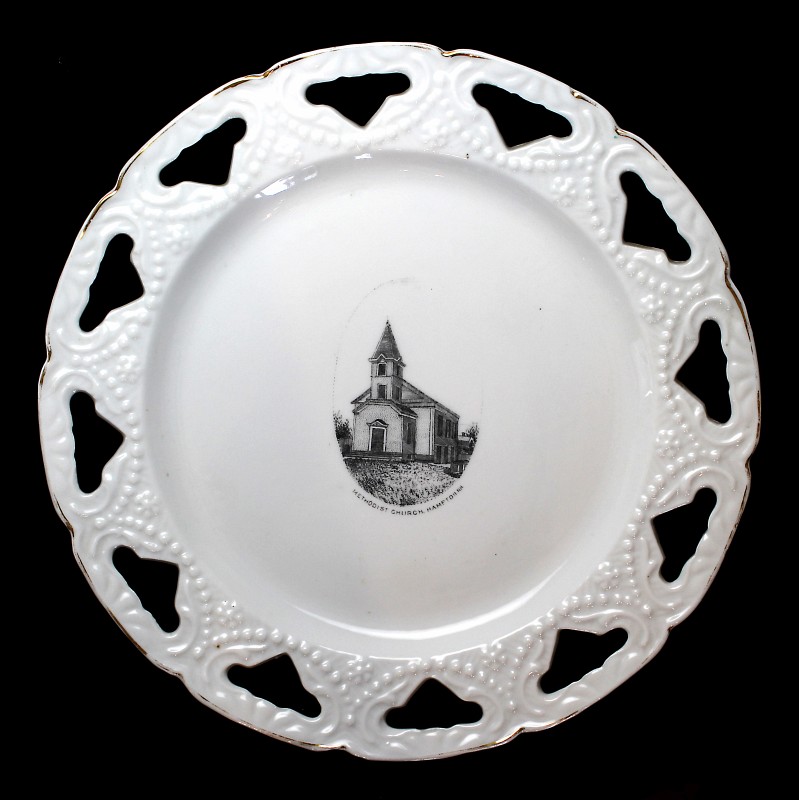 - Hampton Beach Catholic Church plate - like the Lamb's Corner plate (top left), it has full surface decals, intricate detail and coloration; made in Germany; very high quality.