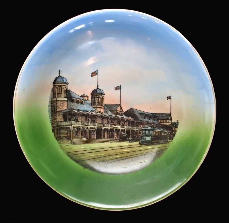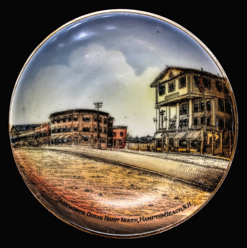 - Lamb's Corner and the Ashworth plate showing the location and hotel - c. 1920s- rebuilt after 1921 fire - full surface decals, intricate detail and coloration; made in Germany; very high quality.