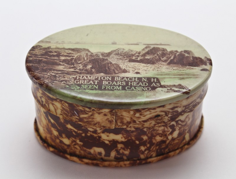 - Tortoise-shell box (right-most box) - says "Great Boars Head as seen from Casino" on the top, with a drawing mostly of rocks in the foreground